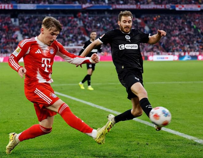 對于孔帕尼來說,他這場比賽的目標(biāo)自然是三分,為此下半場回來他也早早換上了奧利塞和格納布里,不過圣保利卻踢得極其頑強(qiáng),他們在安聯(lián)球場擺下了鐵桶陣,這讓南大王的進(jìn)攻頻繁受阻。第59分鐘,帕夫洛維奇長傳,迪亞斯左路小角度推射擦著立柱偏出;第81分鐘,凱恩在角球進(jìn)攻當(dāng)中后點(diǎn)近距離抽射又擊中立柱。