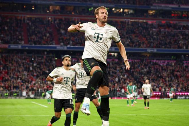 這是凱恩本賽季各項賽事21場打入的第25球,參與的第28球。只用了76場德甲,凱恩就打入77球,參與98球。再參與2球,凱恩將迎來參與德甲100球里程碑。