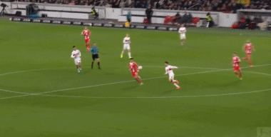 比賽的第60分鐘,凱恩出場換下杰克遜。第66分鐘,凱恩禁區(qū)前得球右腳低射,球貼著草坪飛入死角。